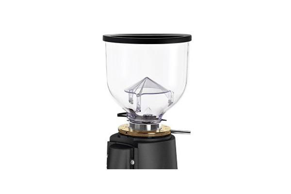 Phễu đựng cà phê hạt (500 gram) bằng chất liệu polycarbondrat cao cấp, trong suốt như thủy tinh và lâu ố vàng hơn các loại nhựa khác. Đặc biệt, phễu này được thiết kế thấp lại giúp máy đặt vừa vặn tại các quầy pha chế không gian hẹp.