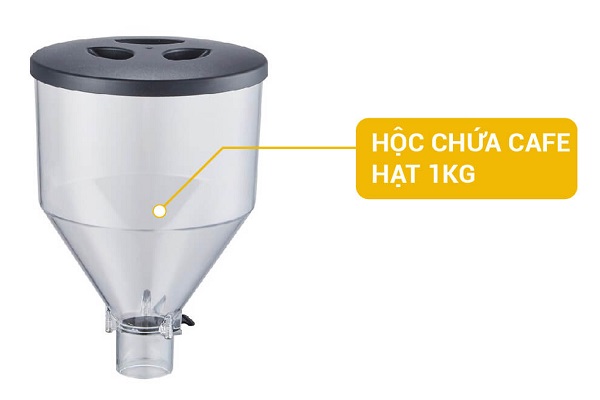 Ngoài trang bị nắp kín bên trên, ngăn chứa hạt còn được thiết kế nón chặn, giúp cà phê không bị bay ra ngoài trong quá trình xay, hạn chế tối đa hao hụt nguyên liệu trong quá trình sử dụng.
