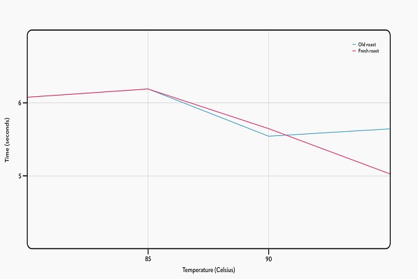 Trên thực tế, nếu bạn tăng nhiệt độ pha, phần đầu tiên của shot espresso sẽ chảy chậm hơn, nhưng phần cuối của shot sẽ chảy nhanh hơn. Điều này có nghĩa là trong thử nghiệm của chúng tôi, tổng thời gian thực hành là như nhau, nhưng ngụ ý bạn có thể nhận được kết quả khác nhau, tùy thuộc vào thời điểm nào của shot espresso.